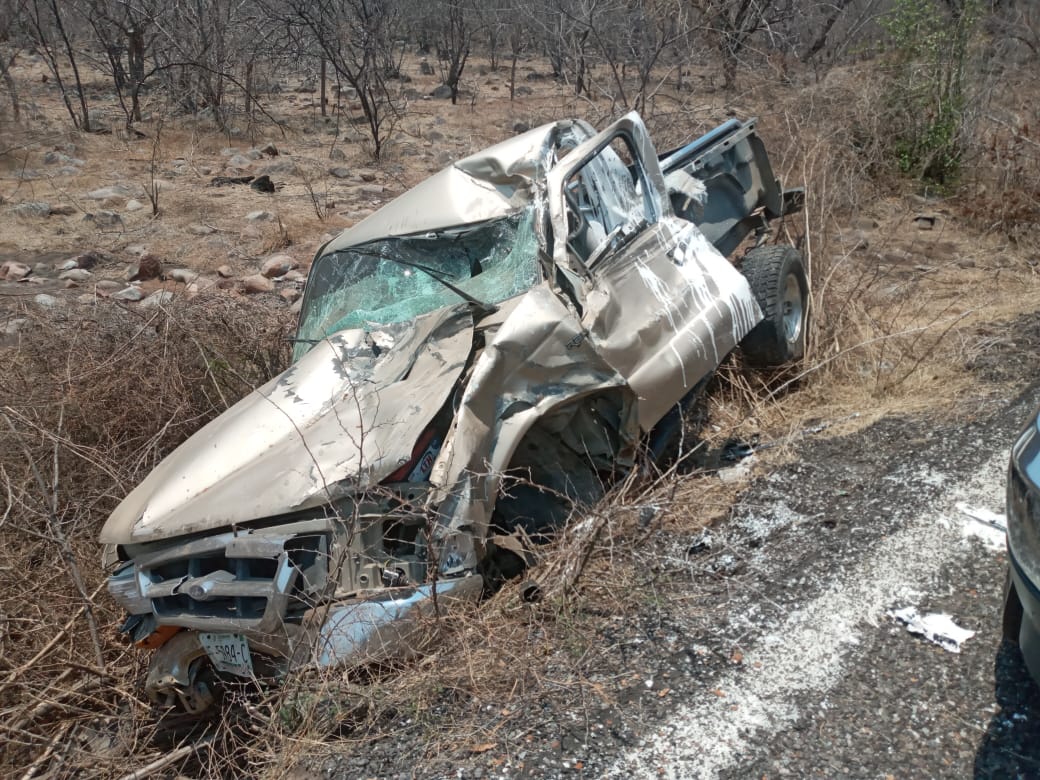 La camioneta accidentada es marca Ford, tipo pickup, color arena, con placas de circulación HF 5984-C del Estado de Guerrero, y se desconoce la identidad de quién la conducía, así como su propietario, ya que una vez volcada fue abandonada, además de que no se encontró documentación en el vehículo.