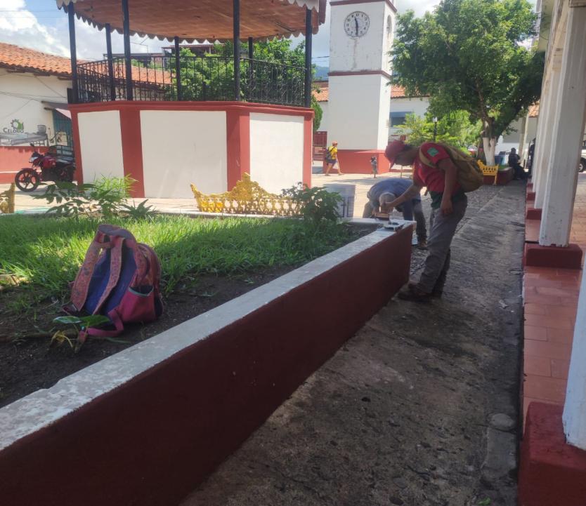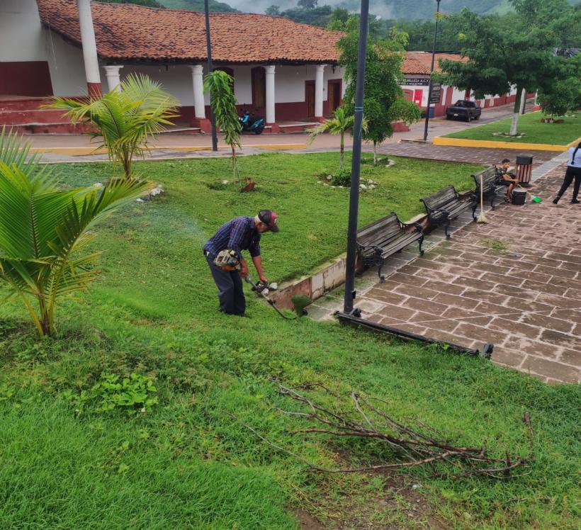 Asimismo, se llevó a cabo una limpieza general en la plaza principal, que incluyó el corte de pasto y el pintado de piedras alrededor de los árboles, además de la colocación de tambos de basura en diferentes colonias de la cabecera municipal.