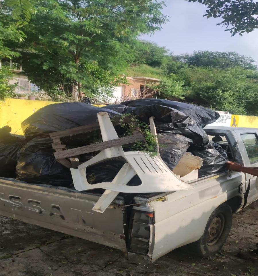 Tentory García informó que también se efectuó una faena comunitaria para la prevención del dengue, con el apoyo de vecinos y personal del Ayuntamiento, reforzando las acciones de salud pública. En paralelo, se realizaron labores de poda en el albergue de secundaria, chaponeo en la unidad deportiva de El Cuitzillo y pintura de cordones y banquetas en la zona del depósito.