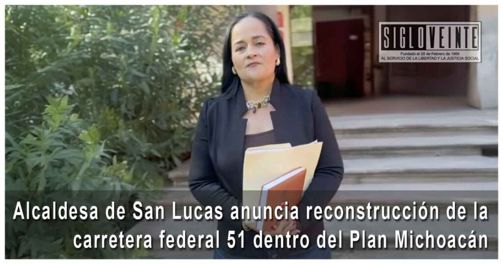 La presidenta municipal de San Lucas, Aralia Saucedo Flores, informó que, tras sostener una reunión con el gobernador de Michoacán, Alfredo Ramírez Bedolla, se confirmó que la reparación de la carretera federal 51 será incluida dentro del Plan Michoacán por la Paz y la Justicia, iniciativa federal que busca atender las causas sociales y promover el desarrollo integral de la entidad.