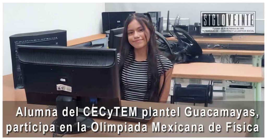 Arena Nicolle Villagómez Hernández, alumna del Colegio de Estudios Científicos y Tecnológicos de Michoacán (CECyTEM) plantel Guacamayas, participa como integrante de la selección estatal en la Olimpiada Mexicana de Física, que se realiza del 18 al 22 de noviembre en esta ciudad capital, en las instalaciones de la Universidad Michoacana de San Nicolás de Hidalgo (UMSNH).