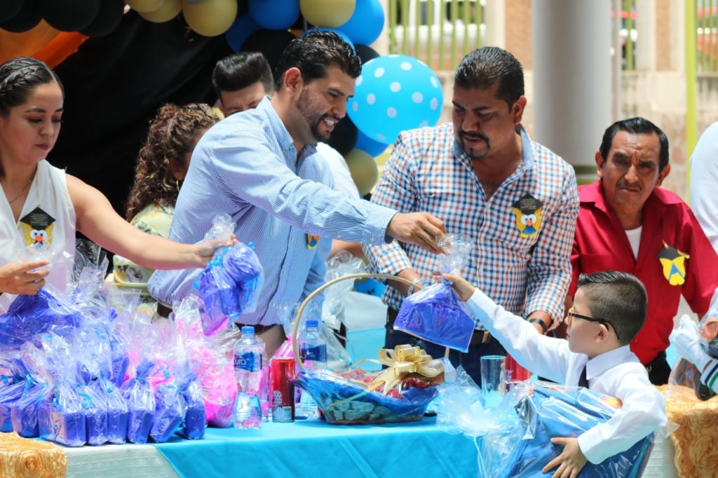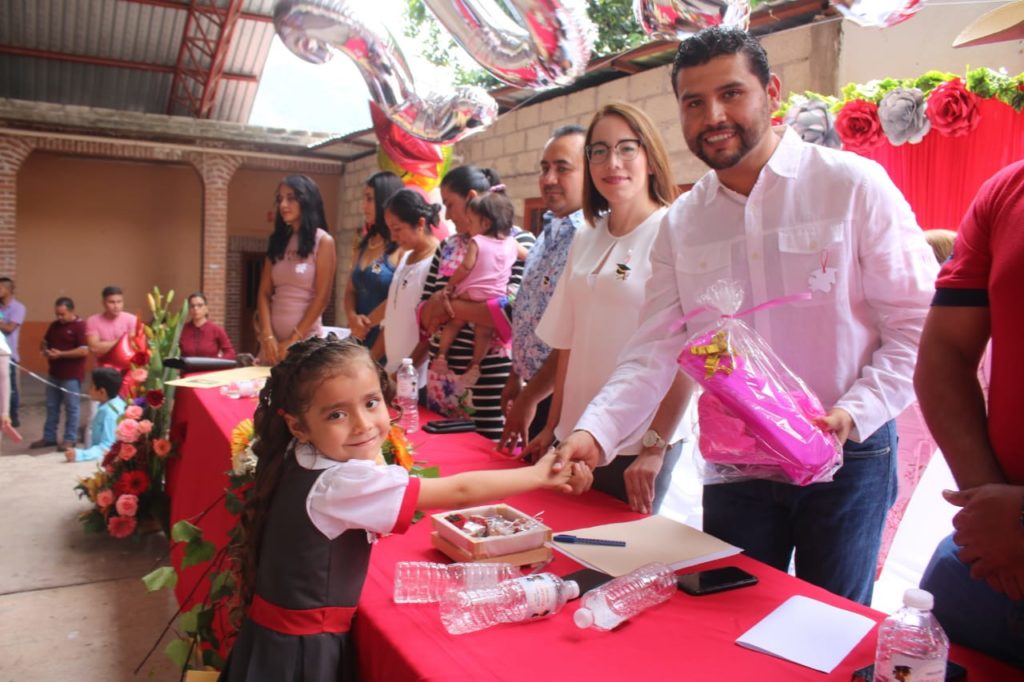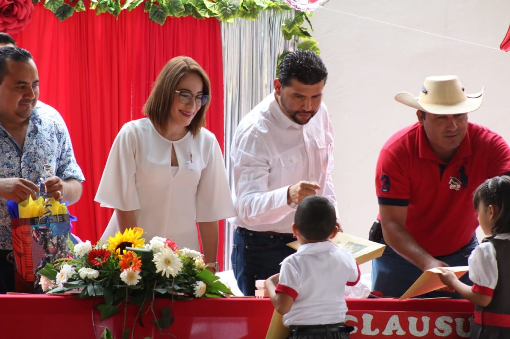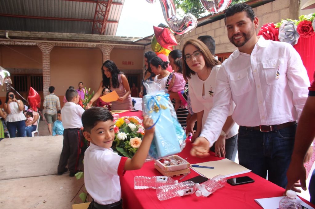 Así también reconoció a los padres de familia y maestros por su compromiso al formar generaciones sólidas, con conocimientos y valores, ante quienes refrendó todo su respaldo para impulsar proyectos integrales en pro de sus comunidades, la niñez y jóvenes.