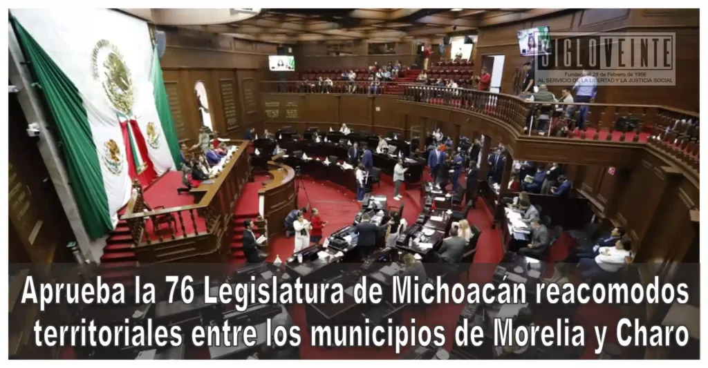 Con 31 votos a favor, la Septuagésima Sexta Legislatura del Congreso del Estado, aprobó una reforma al artículo 3º de la Ley Orgánica de División Territorial de Michoacán, con la cual, diversas localidades dejan de pertenecer al municipio de Morelia y ahora forman parte del municipio de Charo.