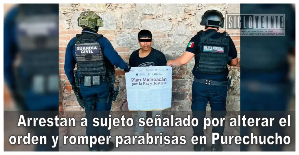 Elementos de la Guardia Civil y de la Seguridad Pública Municipal de Huetamo detuvieron este martes a un masculino señalado por alterar el orden público y provocar daños materiales a un automóvil particular, en hechos ocurridos en la tenencia de Purechucho, perteneciente al municipio de Huetamo.