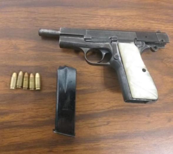 Derivado de lo anterior, los efectivos les marcaron el alto y al inspeccionarlos conforme a los protocolos establecidos, se les localizó entre sus pertenencias un arma de fuego calibre .9mm, un cargador y cinco cartuchos útiles.