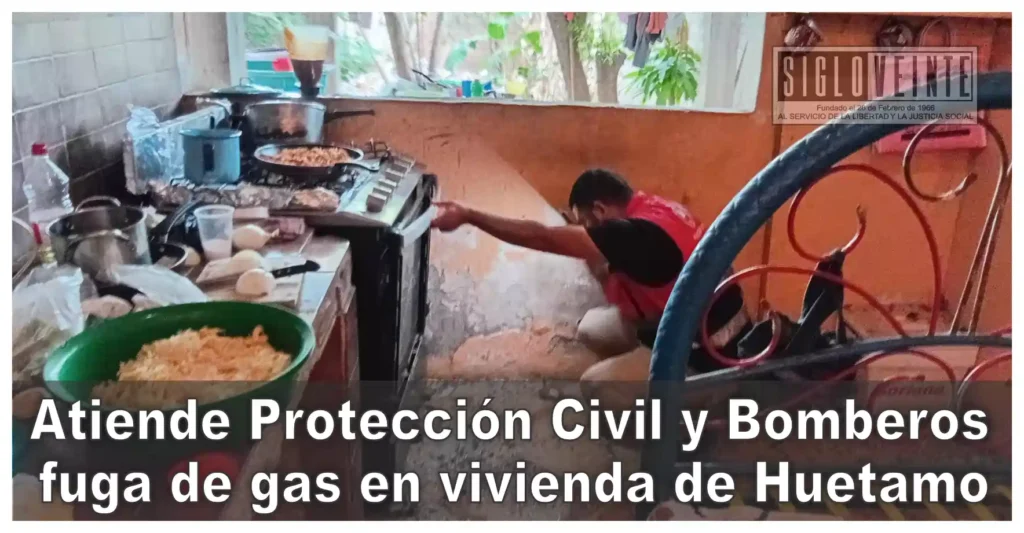 La mañana de este domingo, elementos de Protección Civil Municipal y Bomberos de Huetamo atendieron un reporte por fuga de gas LP en una estufa doméstica, en un domicilio ubicado en la colonia Barrio Alto, en la ciudad de Huetamo.