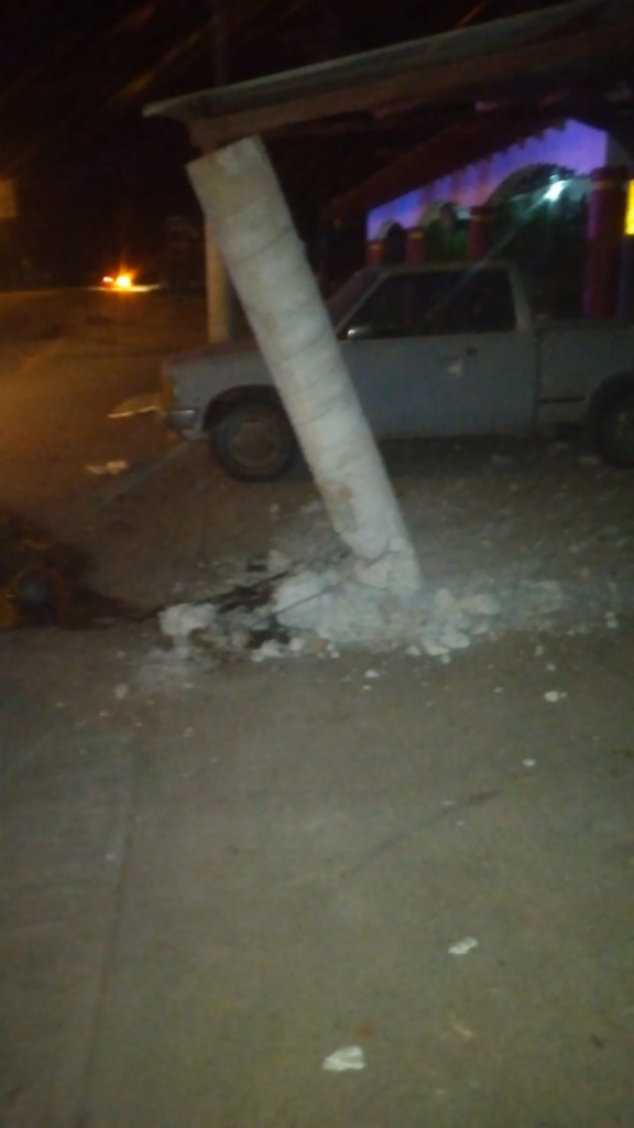 La madrugada de hoy domingo aproximadamente a las 00:30 horas, un automóvil que era conducido a exceso de velocidad, chocó con un poste que sostenía un tejado en la Avenida Madero Sur frente a la altura del número 96 en esta ciudad, resultando lesionada una ocupante.