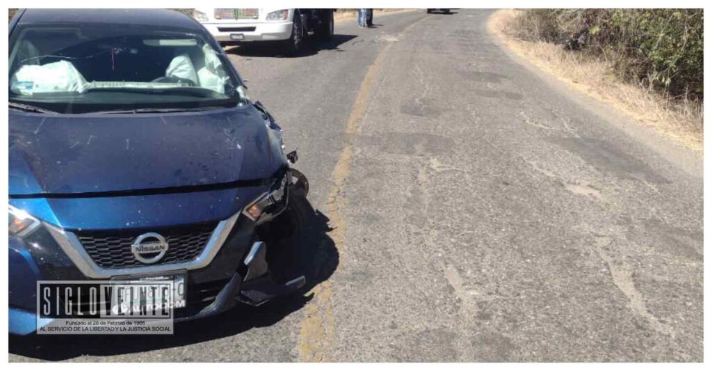 La motocicleta involucrada es de la marca Vento, color negro, sin placas de circulación, no se conocen los datos de quién la conducía, solo se sabe que el piloto resultó con lesiones; el automóvil es marca Nissan, tipo sedan, línea Versa, color azul, modelo 2020, con placas de circulación HFU816C del estado de Guerrero, siendo abandonado en el lugar.