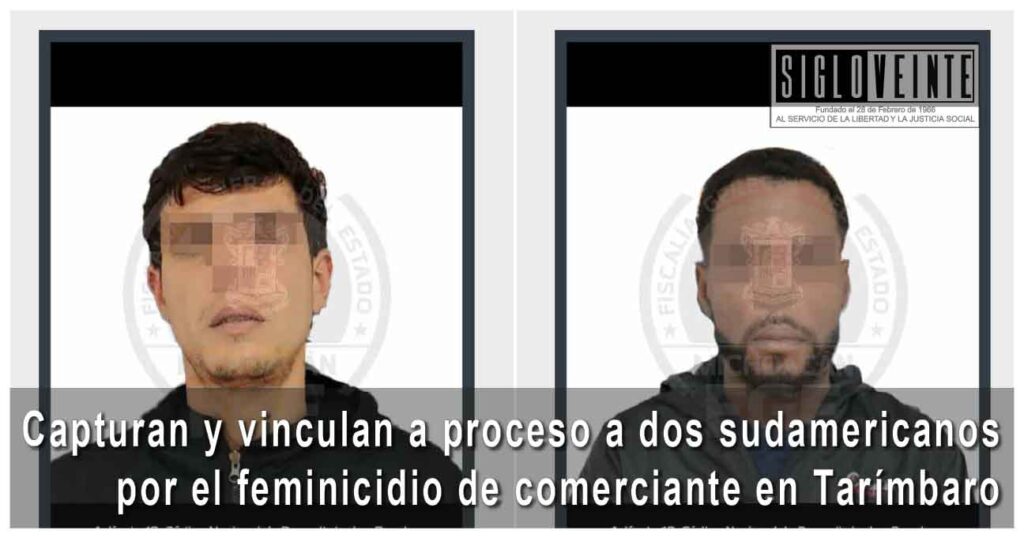 La Fiscalía General del Estado (FGE) informó la captura y vinculación a proceso de dos sujetos identificados como Fredo y Freddy, originarios de Venezuela y Colombia respectivamente, quienes son señalados como presuntos responsables del asesinato de una comerciante en el municipio de Tarímbaro.
