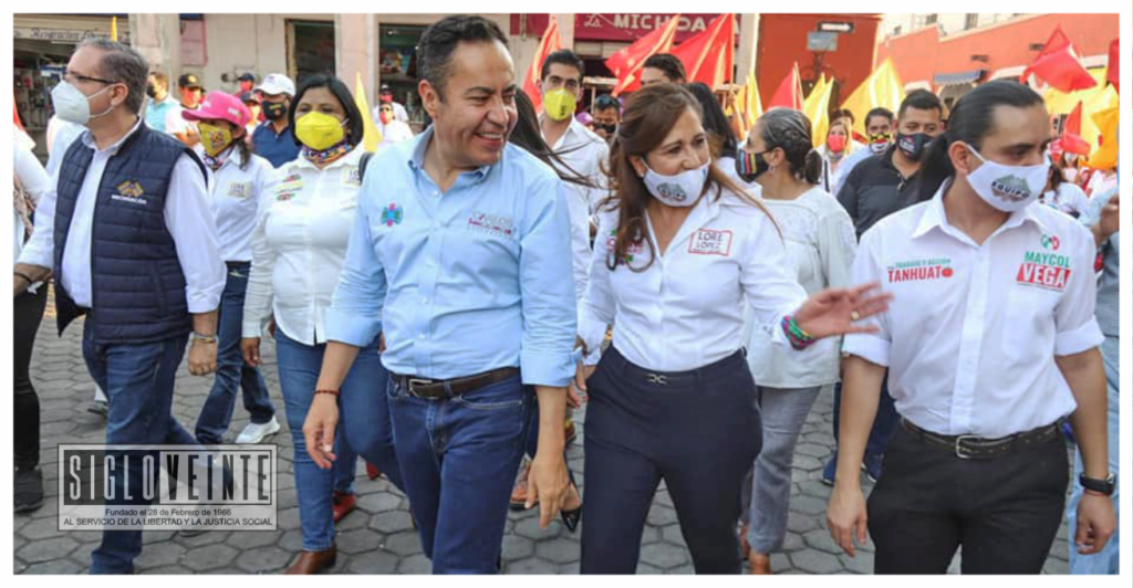 Arropado por militancia de los partidos que lo acompañan en la candidatura común, llega Carlos Herrera Tello a Yurécuaro. Porras, algarabía, banderas multicolores y jingles a modo de cumbia de las y los candidatos locales, encienden el encuentro.