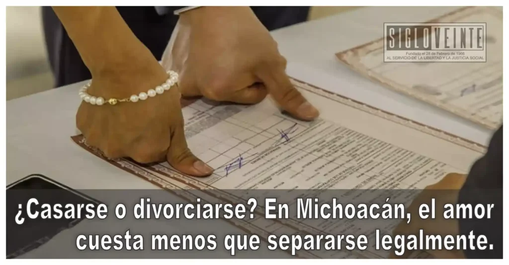 En Michoacán, el matrimonio civil continúa siendo un trámite más económico que el divorcio cuando se analizan únicamente los costos establecidos por el Registro Civil del estado, de acuerdo con las tarifas vigentes difundidas por autoridades y medios informativos.