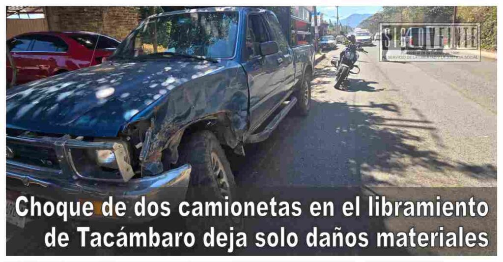 Un choque entre dos camionetas se registró la tarde de este sábado sobre el libramiento sur de esta ciudad, a la altura del establecimiento conocido como pollos “San Miguelito”, dejando como saldo únicamente daños materiales y momentos de tensión para las familias involucradas, entre ellas menores de edad.