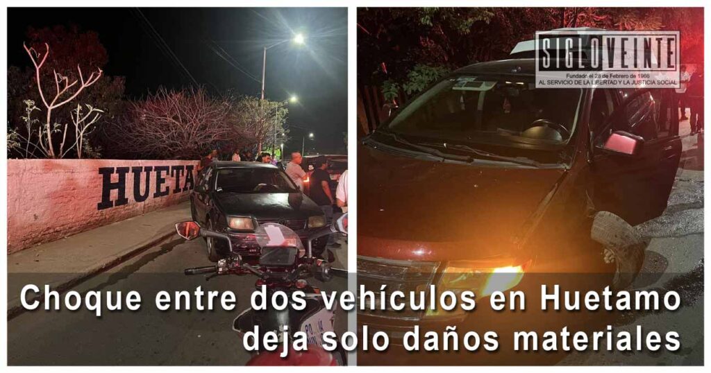 La noche de este viernes se registró un choque entre dos vehículos particulares en la Avenida Madero Norte, a la altura de la negociación Abarrotes San Juan, en la ciudad de Huetamo. A pesar del impacto, únicamente se reportaron daños materiales valuados en varios miles de pesos, sin que hubiera personas lesionadas.