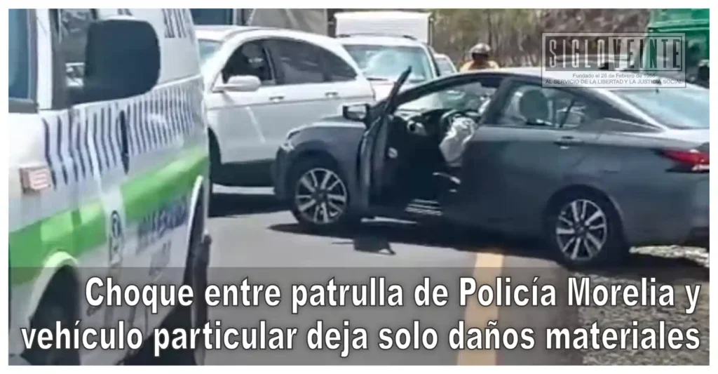 Un percance vial entre una patrulla de la Policía Morelia y un automóvil particular se registró la tarde de este lunes en las inmediaciones de Ciudad Salud en la ciudad de Morela, sin que se reportaran personas lesionadas.