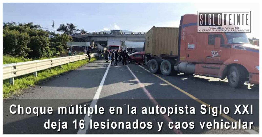 Un accidente múltiple ocurrido la mañana de este jueves en la autopista Siglo XXI, a la altura de la antigua caseta de San Ángel Zurumucapio, dejó como saldo 16 personas lesionadas y una intensa movilización de cuerpos de auxilio.