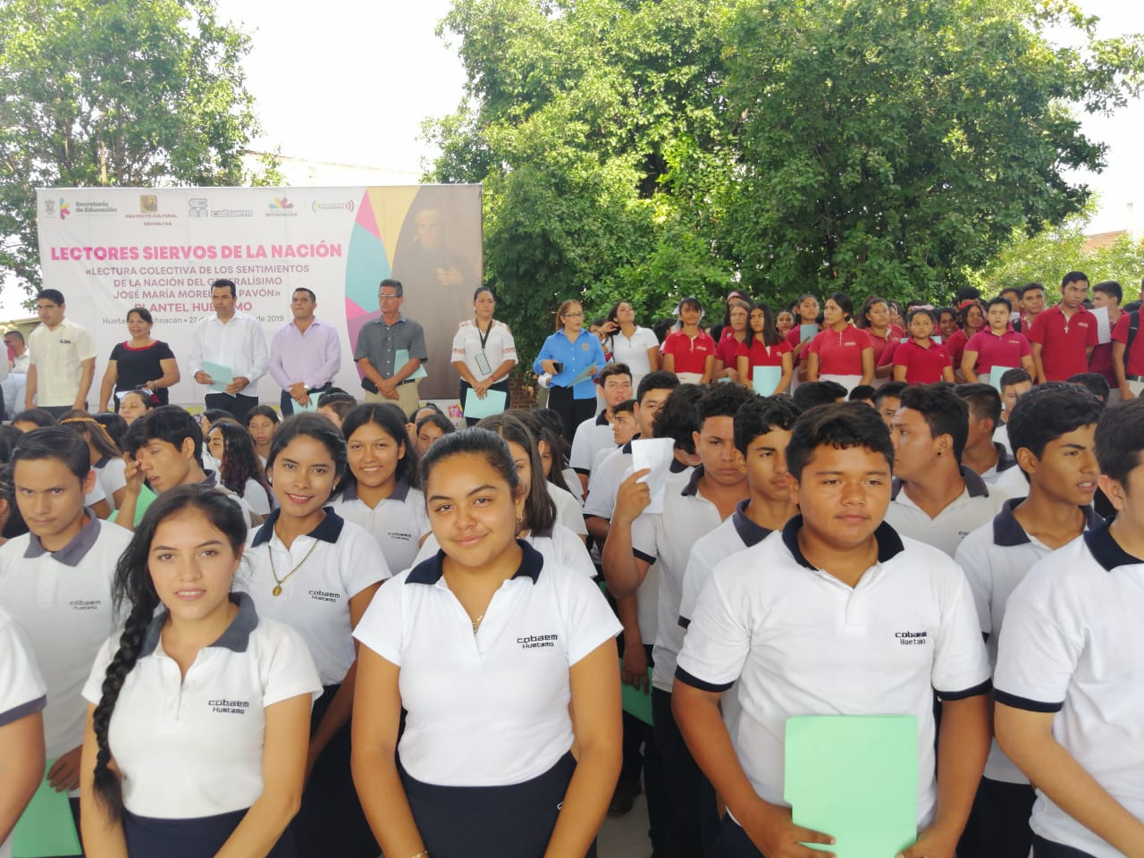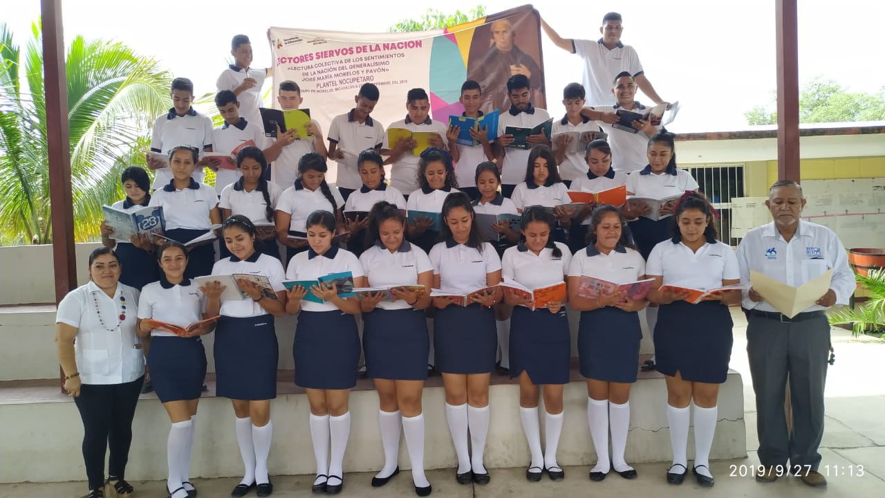 Cientos de jóvenes estudiantes de diversos planteles del Colegio de Bachilleres del Estado de Michoacán, participaron en punto de las 11 horas de este viernes en la lectura de la obra Sentimientos de la Nación de José María Morelos y Pavón.
