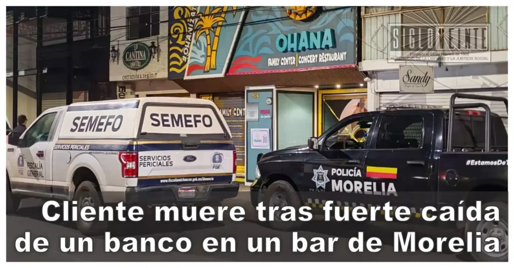 Un hombre falleció durante la noche del domingo al interior de un establecimiento nocturno ubicado en la zona oriente de Morelia, tras sufrir una caída que le provocó lesiones mortales en la cabeza.