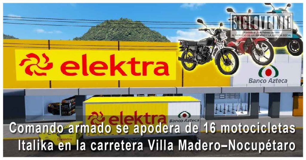De acuerdo con la indagatoria, el apoderado legal de la empresa Elektra S.A. de C.V. interpuso una denuncia ante el agente del Ministerio Público de la Federación, derivado del robo por sujetos armados de 16 motocicletas, las cuales trasladaba a bordo de un tractocamión con placas del Servicio Público Federal.