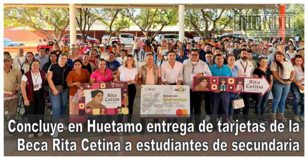En días pasados se llevó a cabo una intensa jornada de entrega de tarjetas de la Beca Rita Cetina en el municipio de Huetamo, la cual concluyó en la Escuela Secundaria No. 1 “Miguel Hidalgo”, beneficiando a alumnas y alumnos de este nivel educativo con un apoyo económico de mil 900 pesos bimestrales por estudiante.