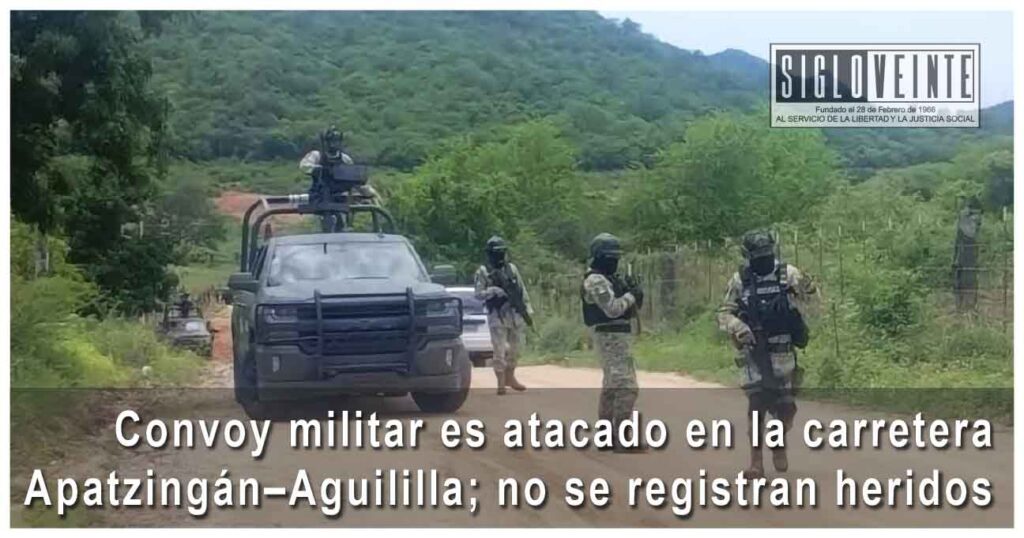 La tarde de este jueves, un convoy del Ejército Mexicano fue blanco de una agresión armada en el tramo conocido como Puerto del Aire, uno de los puntos con mayor incidencia de violencia en la carretera Apatzingán–Aguililla. Los elementos castrenses escoltaban tráileres que transportaban material destinado a la construcción de la base de la Guardia Nacional “Tepalcuatitla”.