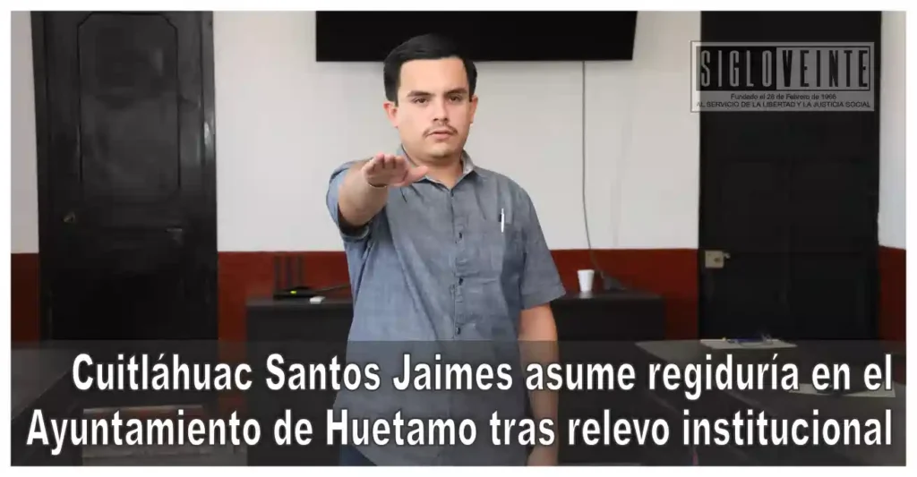 Este día se llevó a cabo el relevo institucional en el cuerpo de regidores del Ayuntamiento de Huetamo, donde Cuitláhuac Santos Jaimes asumió formalmente el cargo en sustitución de Pedro Hernández, quien se desempeñaba como regidor emanado del Partido Revolucionario Institucional.