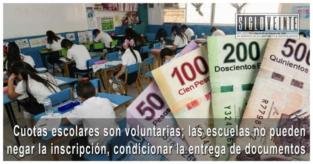 En su compromiso de garantizar los derechos de las y los niños, la Secretaría de Educación del Estado (SEE) reitera que el pago de cuotas escolares es totalmente voluntario y el monto será asignado de común acuerdo entre directivos, docentes y madres y padres de familia, según el contexto comunitario.