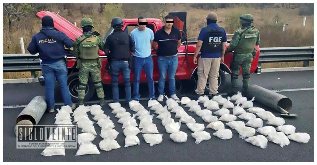 La XXI Zona Militar con sede en Morelia, informó que la droga era y transportada en el interior de dos cilindros para gas LP, en una camioneta tipo pick-up, de modelo antiguo, que era tripulada por dos hombres.