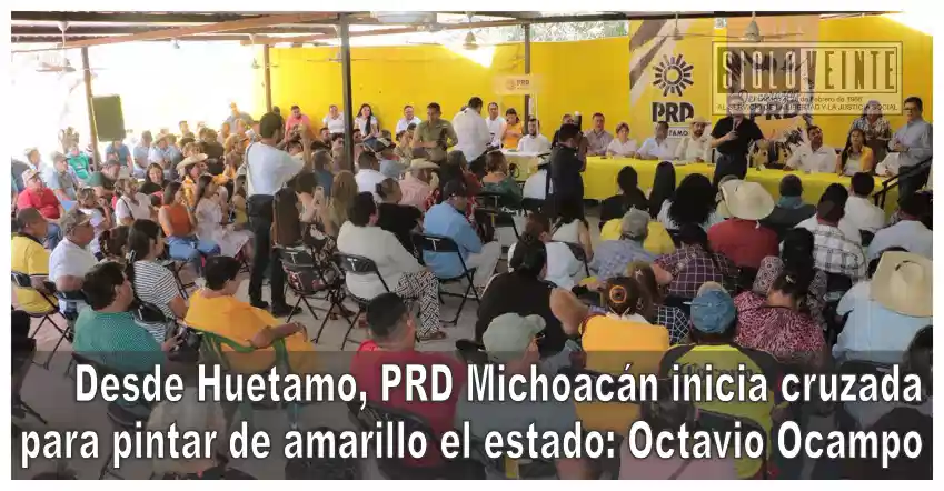 “Vamos a pintar de amarillo Michoacán. Vamos a marcar el territorio con el amarillo de la esperanza”, afirmó Octavio Ocampo, dirigente estatal del PRD Michoacán, al encabezar la Asamblea Municipal en Huetamo, donde se dio inicio a acciones de fortalecimiento partidista en la región rumbo al proceso electoral de 2027.