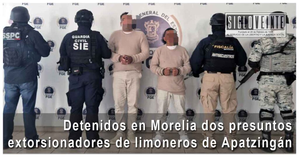 Resultado de un operativo Interinstitucional, elementos de la Secretaría de Seguridad Pública (SSP), en conjunto con la Secretaría de Seguridad y Protección Ciudadana (SSPC) y la Fiscalía General del Estado (FGE), detuvieron a dos objetivos delincuenciales de la región de Tierra Caliente, a quienes se les relaciona con el cobro de cuotas a limoneros y empresarios de Apatzingán y Buenavista.