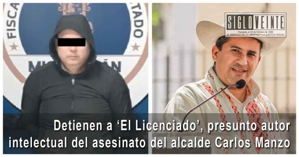 Fue detenido en Morelia el autor intelectual del asesinato del alcalde de Uruapan Carlos Manzo, informó en conferencia de prensa el Secretario de Seguridad Ciudadana, Omar García Harfuch. El detenido, responde al nombre de Jorge Armando “N” alias “El Lic”, operador de una célula del Cártel Jalisco Nueva Generación en Michoacán.