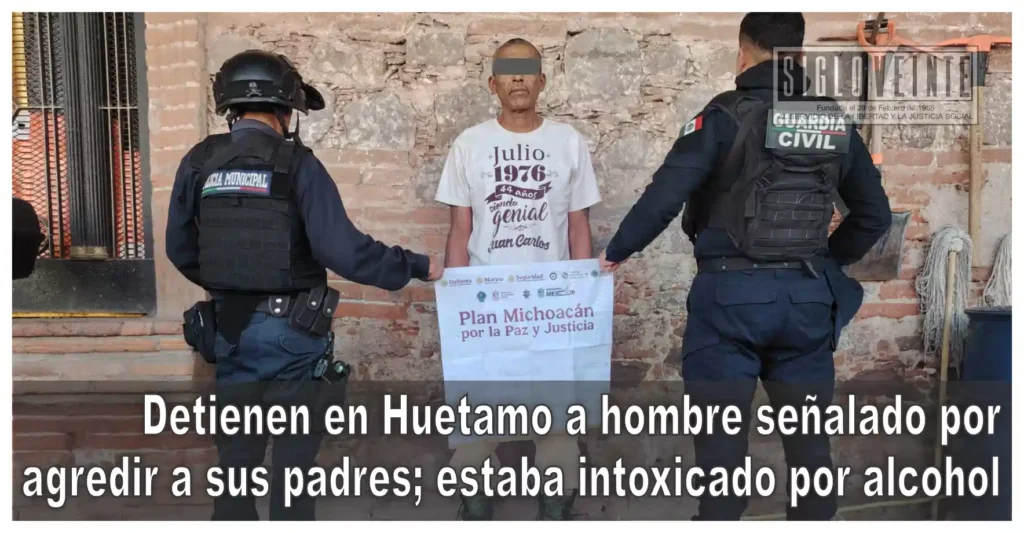 En una acción coordinada entre la Guardia Civil del Estado y la Policía Municipal de Huetamo, un hombre de 52 años fue detenido tras ser señalado por agredir verbal y físicamente a sus padres, ambos adultos mayores. Los hechos se registraron la tarde de este martes en las inmediaciones de la salida a la localidad de San Ignacio, sobre la calle Mariano Jiménez, cerca de la conocida “Tienda de Don Toño”.