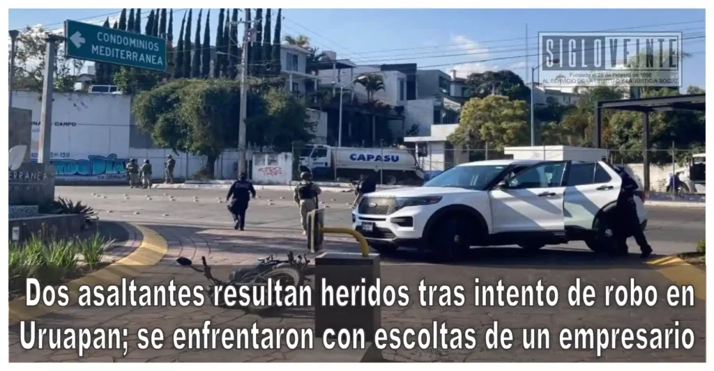 Autoridades de seguridad identificaron a uno de los hombres que resultaron heridos por impactos de arma de fuego tras el intento de asalto registrado la tarde de este martes en el Viaducto a Jicalán, a la altura del acceso a los condominios Mediterránea, sobre la avenida Plan de San Luis, en la colonia Paseo de Gibraltar en Uruapan.