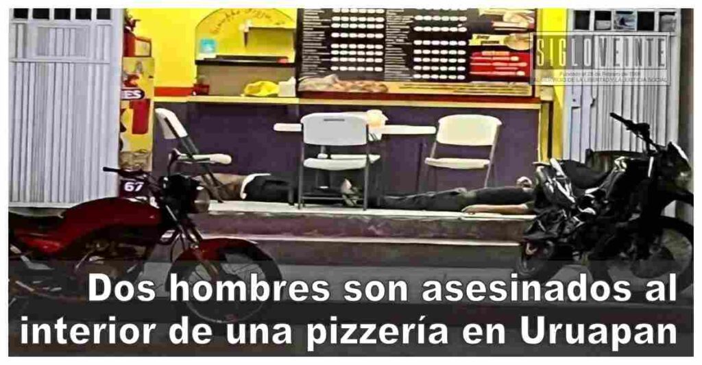 La noche de este miércoles, dos hombres fueron asesinados por impactos de arma de fuego cuando se encontraban al interior de una pizzería ubicada sobre la calle Costa Rica, en la colonia El Colorín de la ciudad de Uruapan.