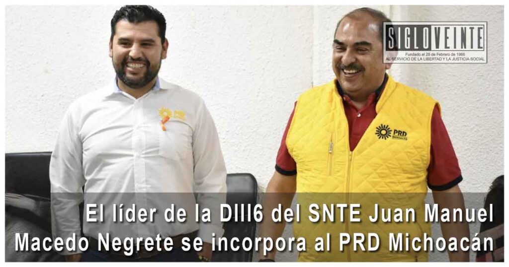 El líder magisterial Juan Manuel Macedo Negrete formalizó su adhesión al PRD Michoacán, sumándose a las filas de la izquierda democrática y contribuyendo al fortalecimiento del partido con miras a los comicios de 2027.