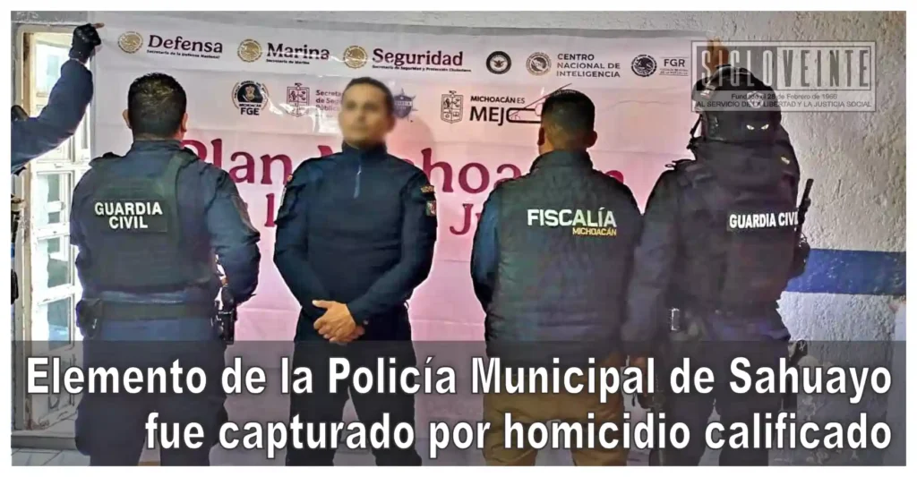 Un elemento activo de la Policía Municipal de Sahuayo fue detenido por personal de la Fiscalía General del Estado de Michoacán, al contar con una orden de aprehensión vigente por su presunta responsabilidad en el delito de homicidio calificado.
