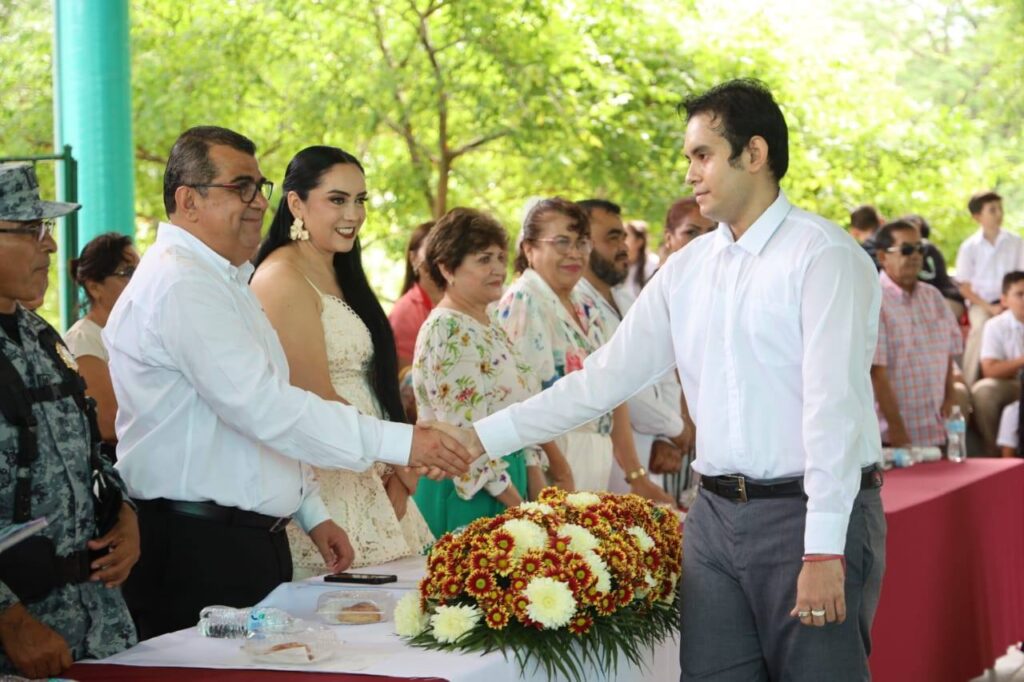 Como parte del acto protocolario, se realizó la entrega simbólica de paquetes de libros de texto gratuitos a estudiantes de los seis grados de primaria, un gesto con el que las autoridades reafirmaron el compromiso con la educación pública en la región.