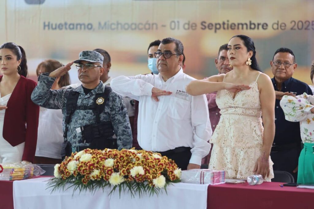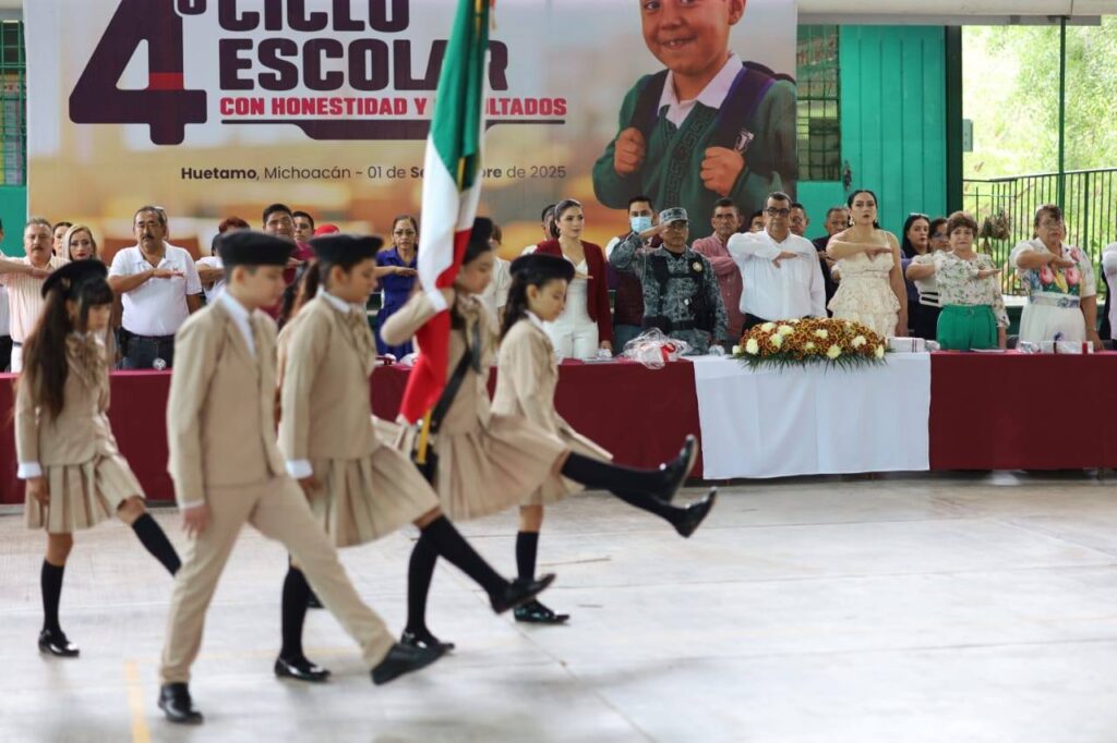 En representación del gobernador Alfredo Ramírez Bedolla, el secretario de Salud de Michoacán, Elías Ibarra Torres, encabezó este lunes la ceremonia de inauguración del ciclo escolar 2025–2026 en la Escuela Primaria 20 de Noviembre de Huetamo, acompañado por representantes de instituciones educativas, autoridades municipales y legislativas.