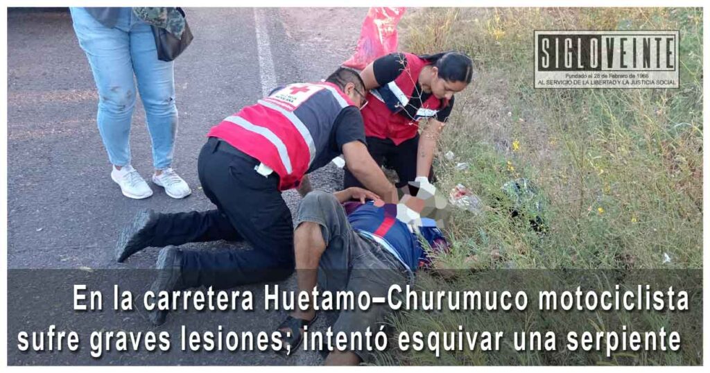 El lesionado fue identificado como Héctor Eduardo “N”, de 38 años, quien manejaba una motocicleta color negro con rojo. De acuerdo con el reporte preliminar, el conductor habría perdido el control de la unidad al intentar esquivar a una serpiente que se atravesó en el camino, lo que provocó el derrape.