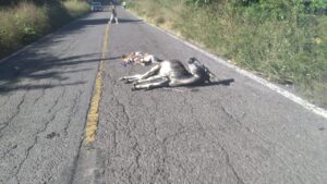 La tarde ayer sábado, la falta de precaución del conductor de un tractocamión provocó que dos camionetas chocaran y a su vez atropellaran a una persona de la tercera edad quien iba montado en su burro, el cual murió en el lugar, hechos ocurridos aproximadamente a las 14:30 horas en el kilómetro 151+400 de la carretera federal Temascal-Ciudad Altamirano, en el lugar conocido como La Tiringucha perteneciente a este municipio de Huetamo.