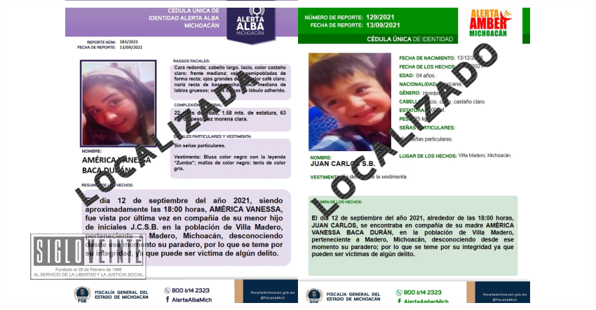 Con relación a este hecho, personal de la Fiscalía Especializada para la Investigación y Persecución de los Delitos de Desaparición Forzada de Personas y Desaparición Cometida por Particulares, se trasladó a una localidad del referido municipio para realizar actuaciones con relación a la desaparición de una mujer y su hijo, de quienes se activaron los protocolos de búsqueda establecidos en las alertas Alba y Amber.