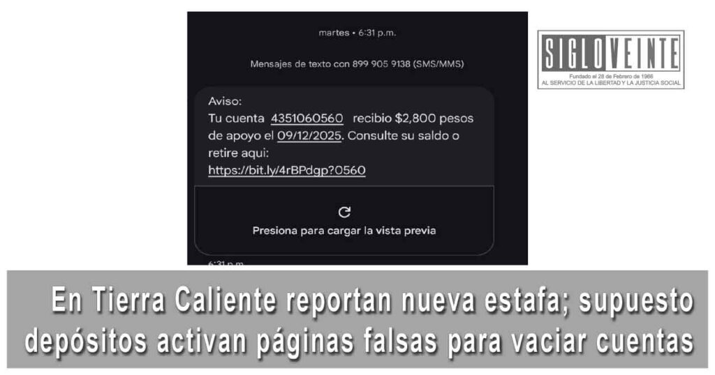 En redes sociales, usuarios de la región de Tierra Caliente de los estados de Michoacán y Guerrero han comenzado a reportar un nuevo tipo de estafa, la cual consiste en mensajes SMS informando supuestos depósitos que solamente activan páginas falsas las cuales vacían cuentas bancarias.