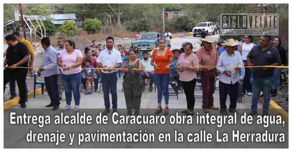 El pasado martes, habitantes de la cabecera municipal de Carácuaro recibieron la obra de pavimentación e introducción de servicios básicos en la calle La Herradura, como parte de las acciones impulsadas por el gobierno municipal para mejorar la infraestructura urbana y las condiciones de vida de la población.