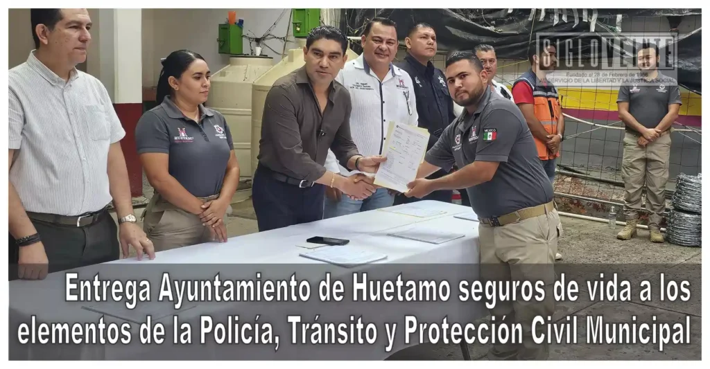 Con el propósito de fortalecer las condiciones laborales y brindar respaldo a quienes participan en tareas de seguridad y auxilio, el presidente municipal de Huetamo, Pablo Varona Estrada, encabezó la entrega de seguros de vida a elementos de la Policía Municipal, Tránsito y Protección Civil.