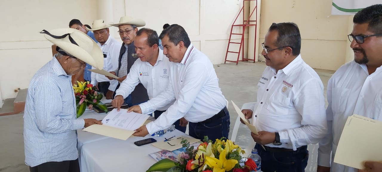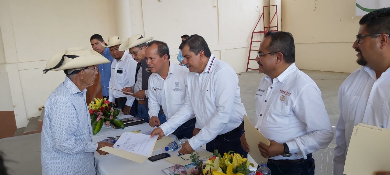 La entrega de las pólizas que cubrieron desde una hectárea por valor de mil 500 pesos hasta un máximo de 20 hectáreas por beneficiario, el acto fue presidido por el mandatario municipal, Efraín Serrato Díaz; Rubén Medina Niño, titular de SEDRUA (Secretaría de Desarrollo Rural y Agroalimentario); Daniel Serrato Díaz, en representación del delegado federal de Programas del Bienestar, Roberto Pantoja Arzola; Vicente García Lara, Subdelegado de Planeación y Desarrollo Rural, y encargado en Michoacán de la SADER (Secretaría de Agricultura y Desarrollo Rural).