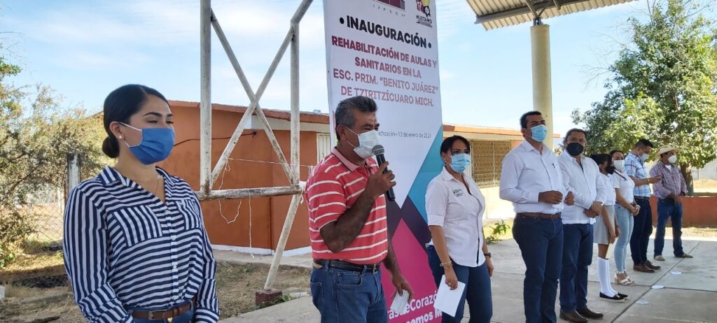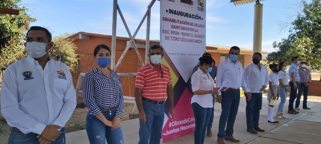 En la primera institución educativa visitada por ambos funcionarios, el edil huetamense y la titular del IIFEEM, realizaron la inauguración de la rehabilitación total de la Escuela Primaria Benito Juárez de la comunidad Tziritzícuaro, obra que tuvo una inversión cercana a un millón de pesos.