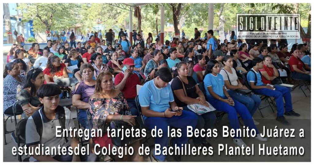 En el patio central del Colegio de Bachilleres Plantel Huetamo se realizó la mañana de este viernes un acto oficial para la entrega de tarjetas del programa federal Becas Benito Juárez, dirigidas a estudiantes de primer año.