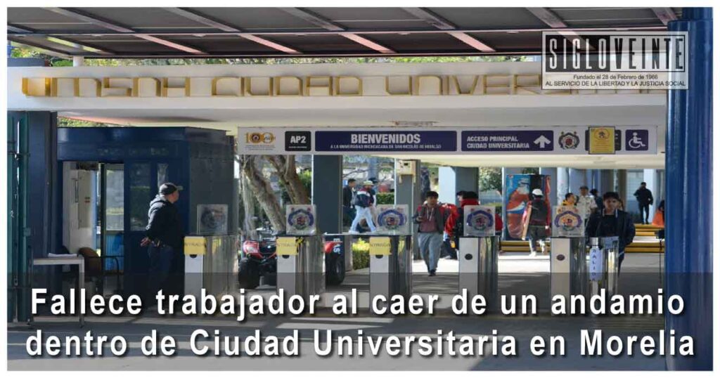 Un hombre perdió la vida la mañana de este jueves tras caer de un andamio mientras realizaba labores al interior de las instalaciones de la Universidad Michoacana de San Nicolás de Hidalgo (UMSNH), en Ciudad Universitaria.