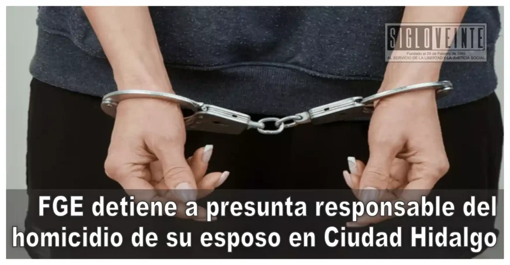 La Fiscalía General del Estado de Michoacán (FGE) logró la detención de Jocelyn “N”, presunta responsable del homicidio de su esposo en el municipio de Ciudad Hidalgo.
