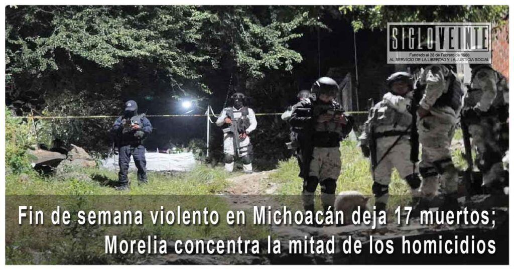 Michoacán vivió nuevamente una jornada violenta durante el fin de semana, con saldo de 17 personas asesinadas en distintos puntos del estado, entre ellas un policía municipal y tres mujeres. Los hechos se registraron en Morelia, Apatzingán, Parácuaro, Tarímbaro, Uruapan, Zamora y Villa Madero, municipios que fueron escenario de ataques armados, enfrentamientos y ejecuciones.