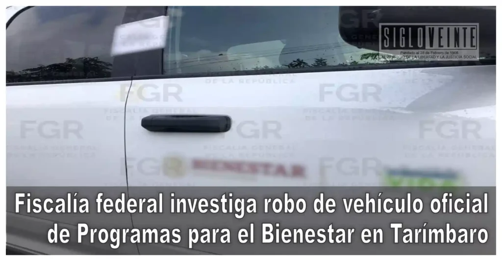 La Fiscalía General de la República (FGR) en Michoacán abrió una carpeta de investigación por el robo de una unidad oficial adscrita a “Programas para el Bienestar”, tras los hechos ocurridos en el municipio de Tarímbaro.